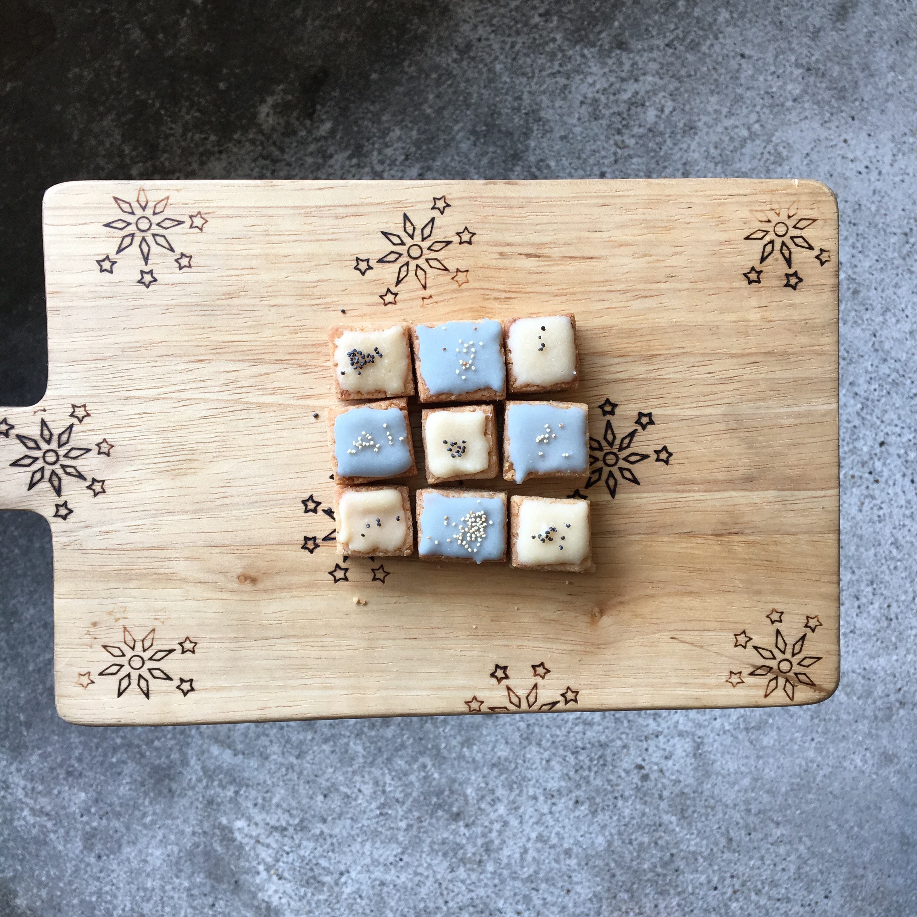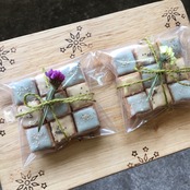 無農薬の米粉にorganicの6種のスパイスや自家製キャラメルソース、アーモンド粉などを混ぜ込み、天然色素スピルリナと甜菜糖でアイシングをほどこしました。